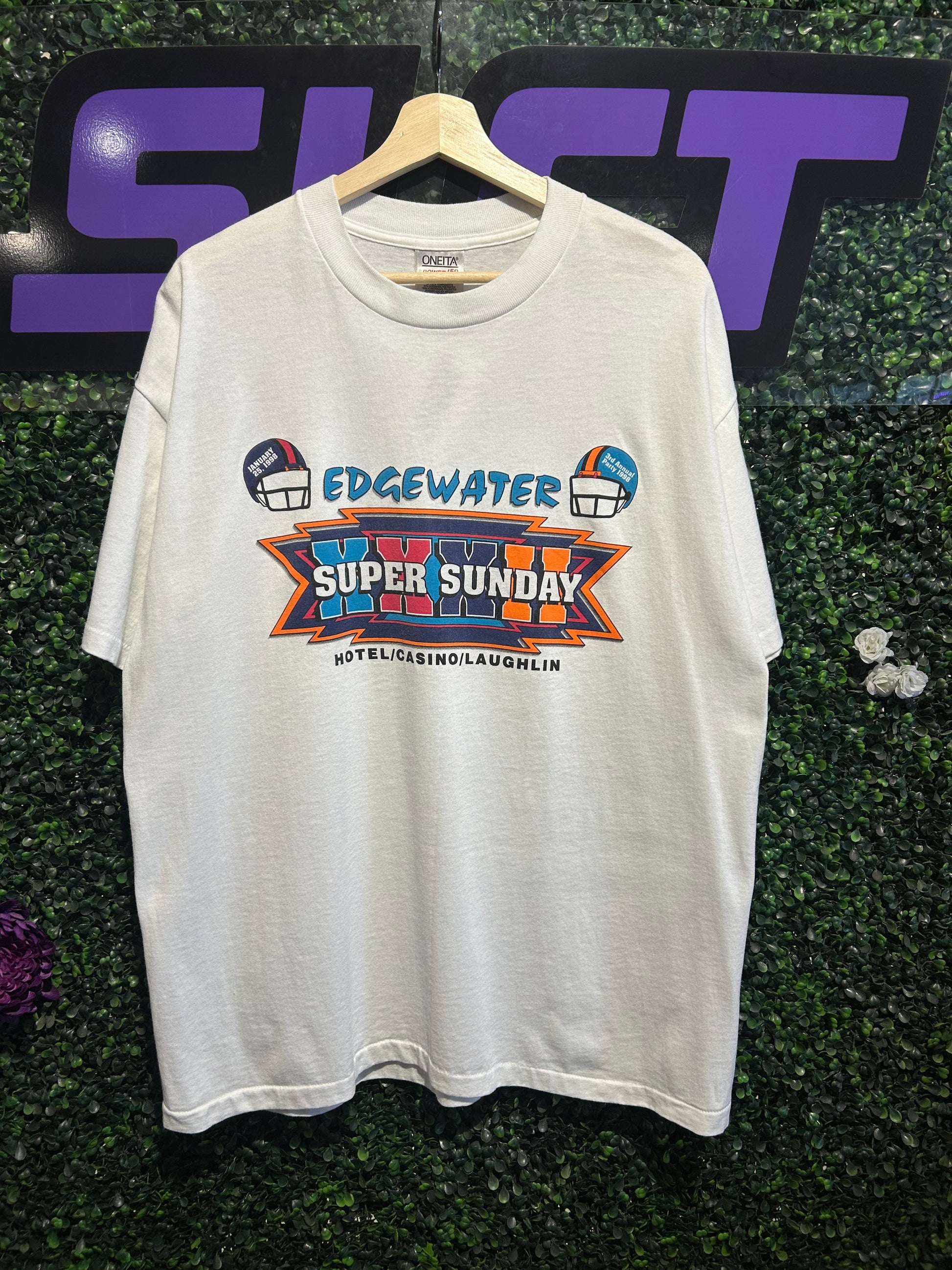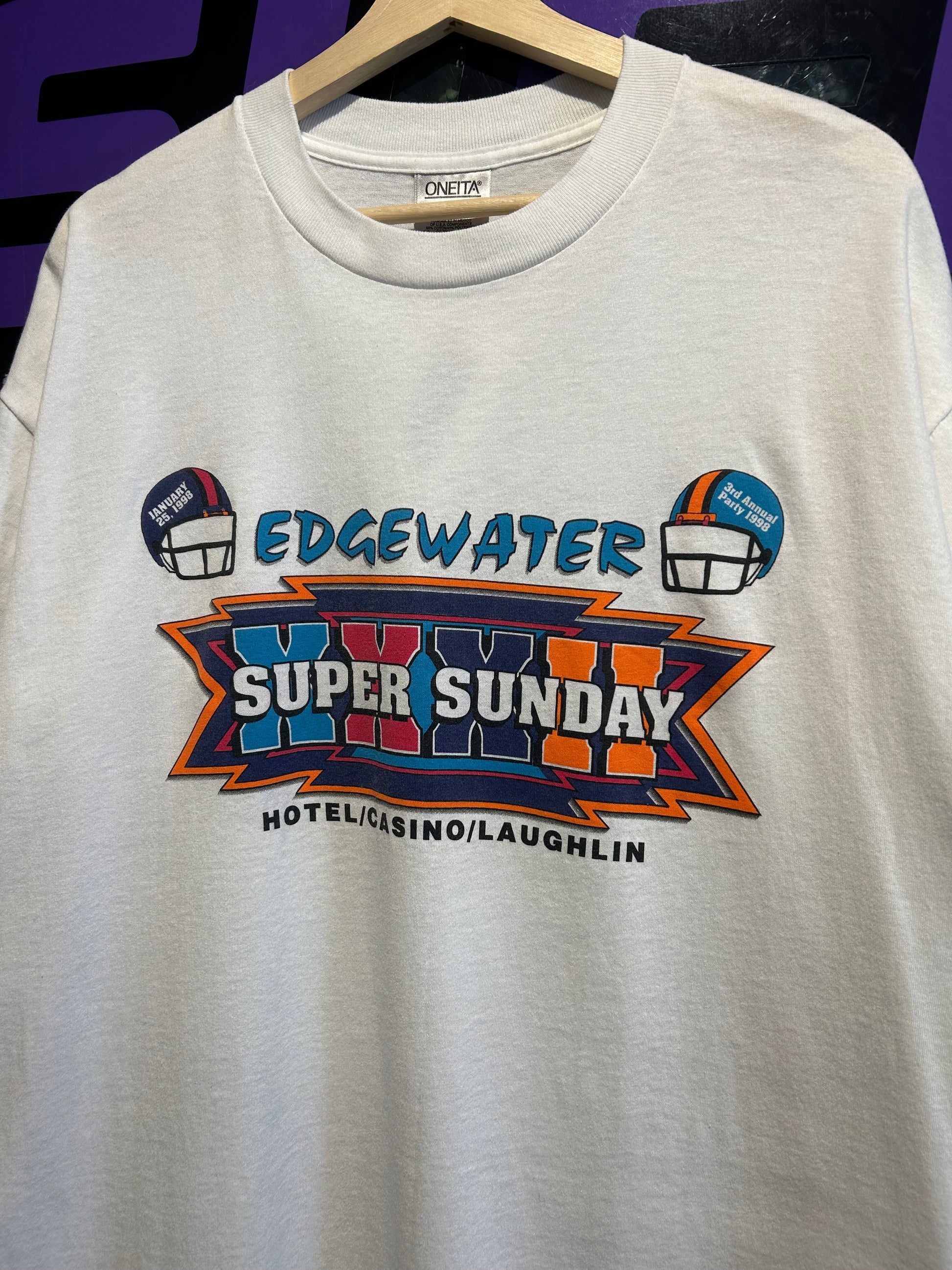 1998 Super Bowl XXXII Edgewater Casino T-Shirt. Size XL