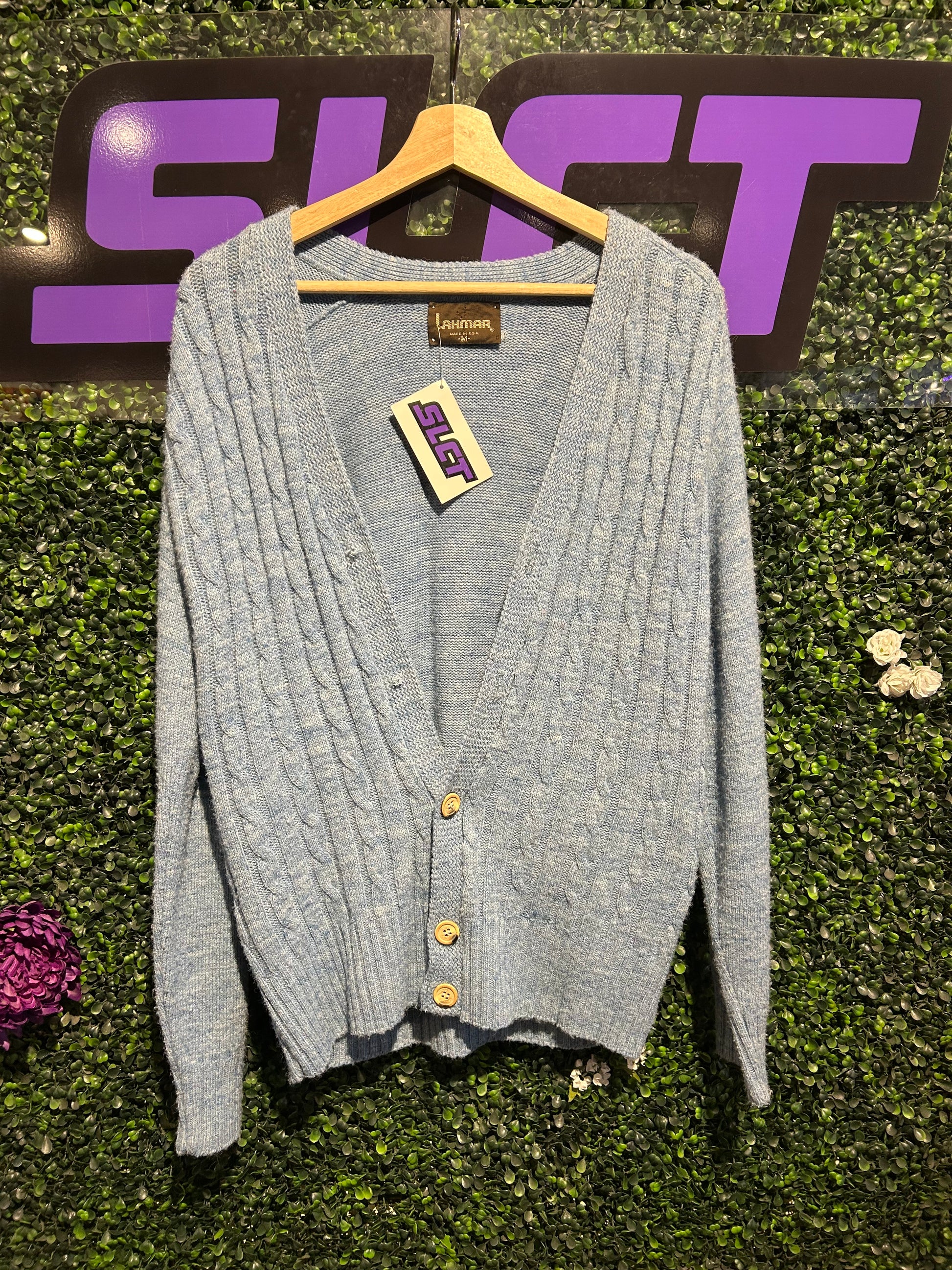 80s Lahmar Cable-Knit Cardigan. Size Medium