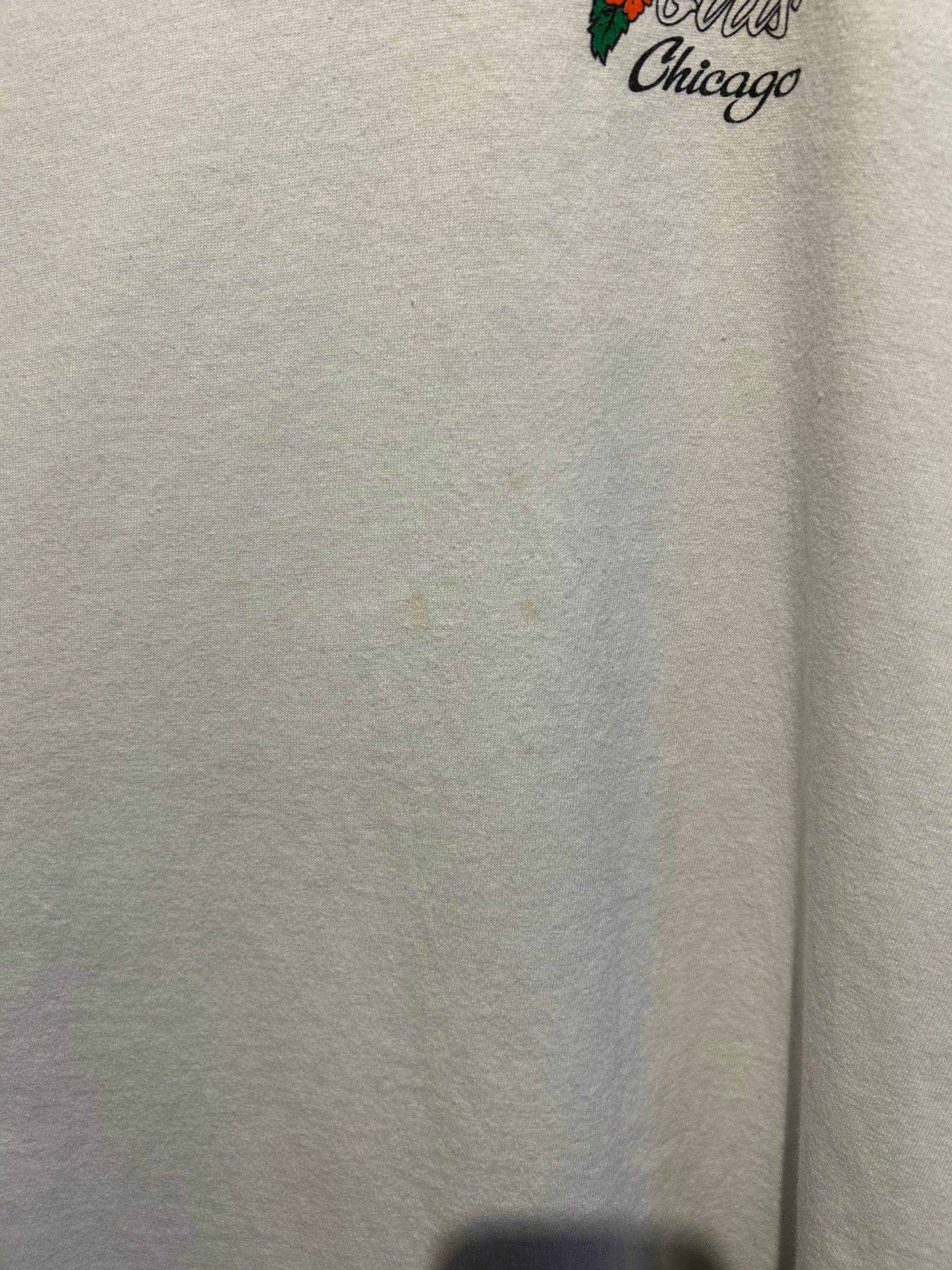 Small light stains on front and sleeve